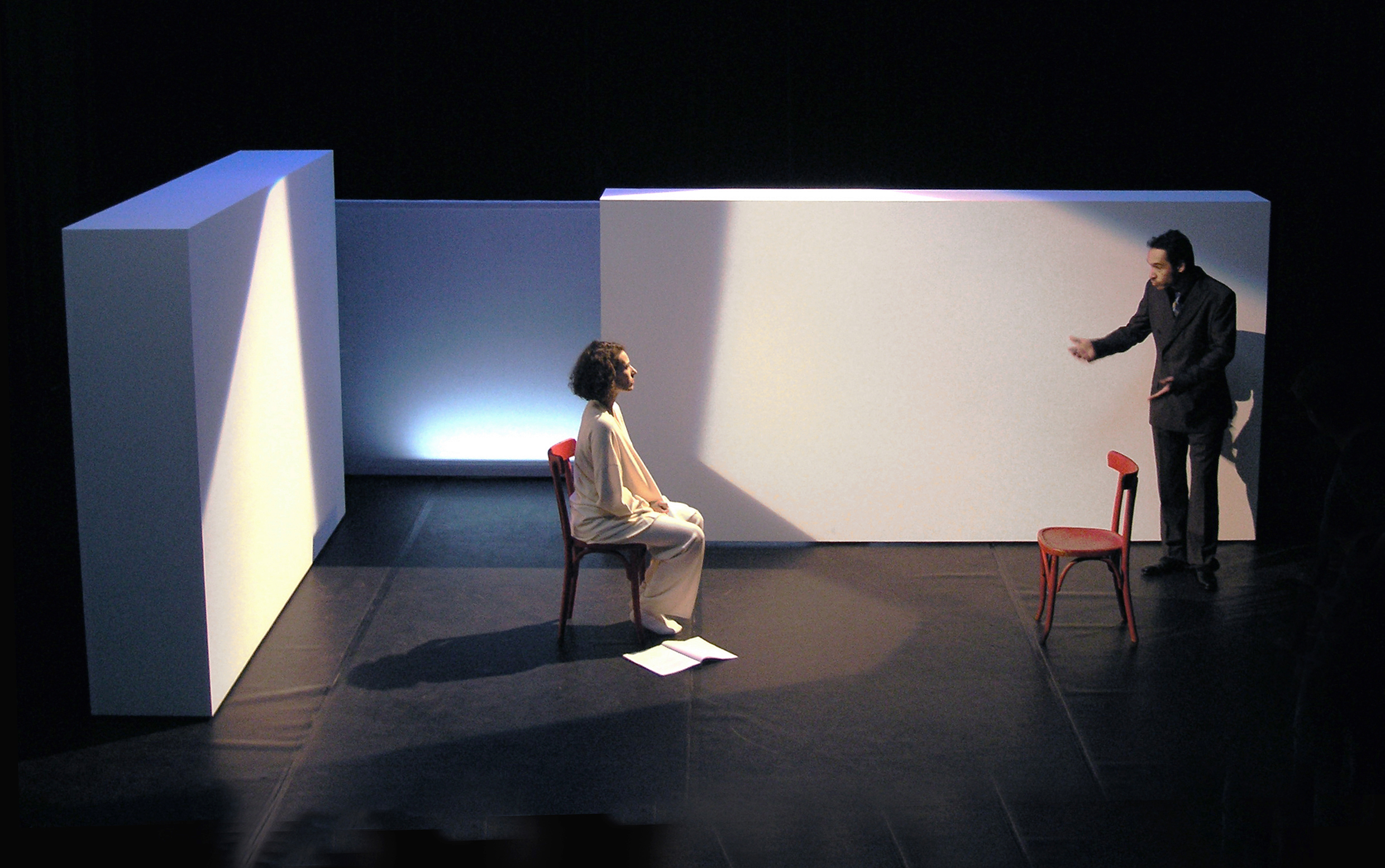 … Cette parfaite impression de liberté et de sincérité n’au- rait sans doute pas eu le même impact sans la volonté de rendre la scène sobre et neutre, s’offrant aux chanteurs tel un immense espace libre. Jean-François Sivadier et Virginie Gervaise ont ainsi installé de simples panneaux à caractère japonisant, malléables à souhait, afin de pro- mouvoir un lieu perdu tantôt extérieur ou intérieur, ouvert ou clos, un lieu mystérieux où rien n’est repérable si ce n’est la musique elle-même …